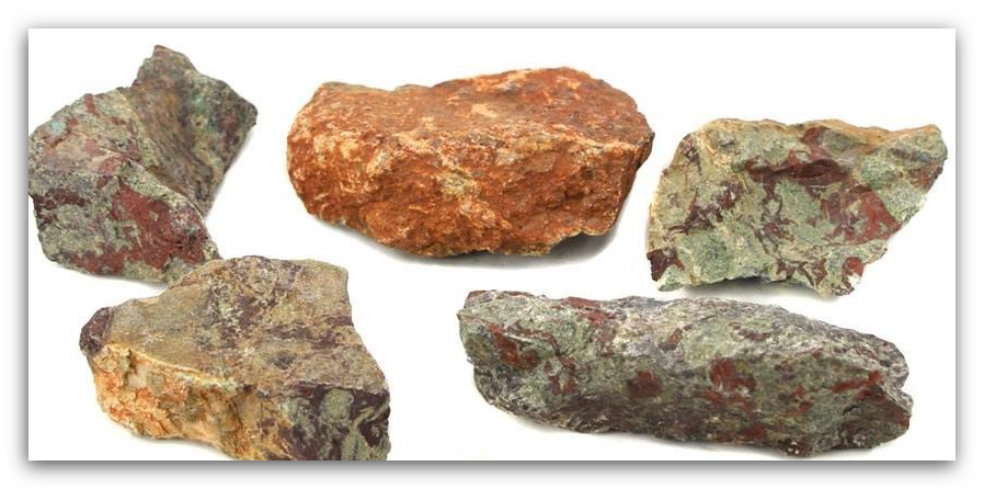 Deze prachtige drakenjaspis ruwe stenen scoren met hun mooie wijnrode kleuring, ingebed in de bosgroene matrix. Het doet denken aan het oppervlak van een drakenhuid.
